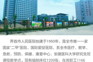 界首市人民醫院始建于一九五0年,系衛(wèi)生部批準的“二級甲等綜合性醫院”,是全市...